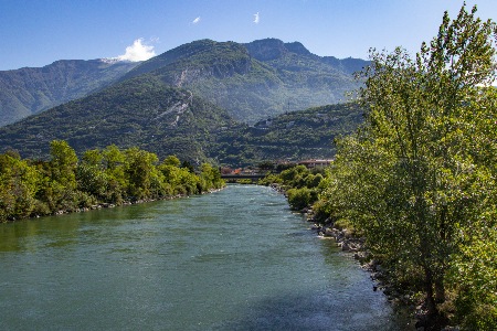 zwischen Torbole und Riva, größter Zufluss zum Gardasee, die Sarca