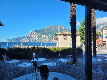 Torbole, Hotel Lago di Garda, Ausblick beim Frühstück